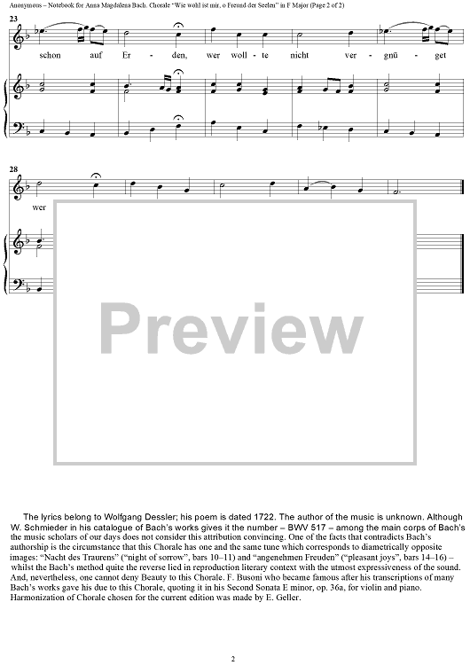 Digital Sheet Music for 40. “Wie wohl ist mir, o Freund der Seelen”, Choral by Johann Sebastian Bach scored for Piano Solo; id:365202