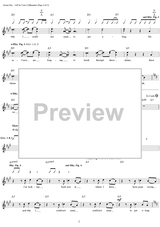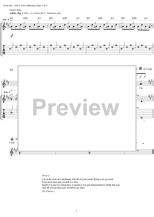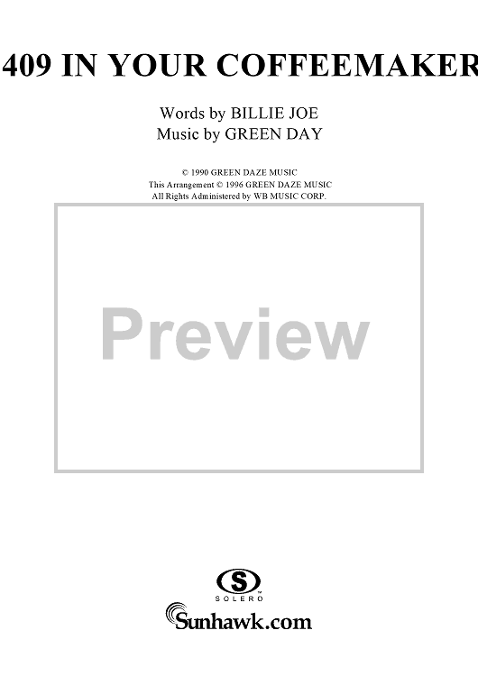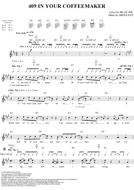 "409 In Your Coffemaker" Sheet Music by Green Day