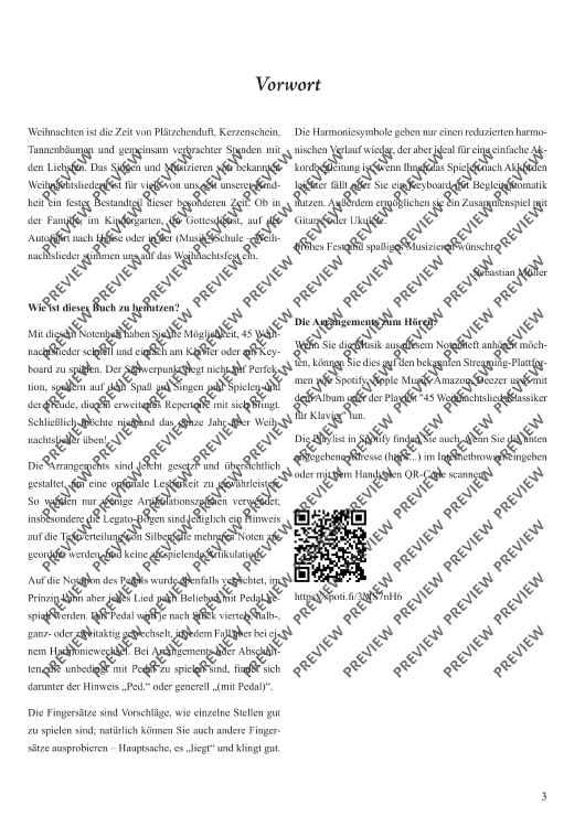 Experience the true magic of Christmas with our sheet music book "45 Christmas Carol Classics for Piano"! Immerse yourself in the festive atmosphere of the scent of cookies, candlelight and the sound of Christmas carols that have accompanied us since childhood. This sheet music booklet offers you an inexpensive way to play 45 popular Christmas songs quickly and easily on the piano or keyboard. The focus here is not on perfection, but on the fun of making music and the joy of expanding your repertoire. After all, nobody wants to play Christmas songs all year round! The arrangements are easy to set and clearly laid out so that you can easily grasp the notes. Even if you have only had 1–2 years of piano or keyboard lessons, you will be able to play many songs without any problems. Harmony symbols and fingerings are included for quick orientation. This means you can also play the arrangements on keyboards with automatic accompaniment and even accompany yourself with guitar or ukulele. And the best thing about it? You can listen to the music in this music book at any time! Simply search for the album or playlist "45 Christmas Carol Classics for Piano" on your favorite streaming platforms such as Spotify, Apple Music, Amazon or Deezer. So you can enjoy the melodies in advance and get inspired. Imagine filling the hearts of your loved ones with wonderful music at Christmas. Order your copy of the sheet music book "45 Christmas Carol Classics for Piano" today and make the Christmas season even more magical with your musical accompaniment! Christmas and music go together – make your celebration unforgettable!