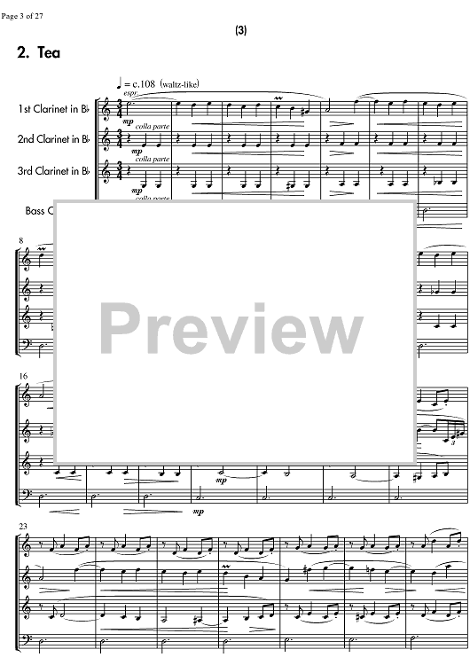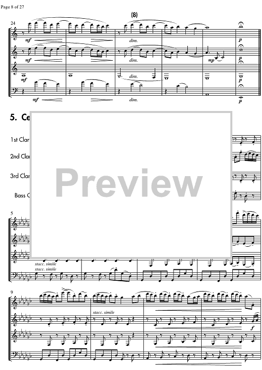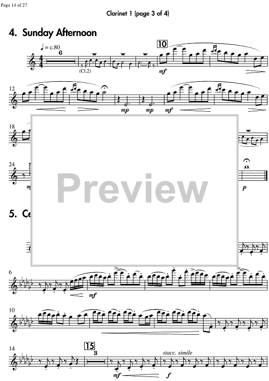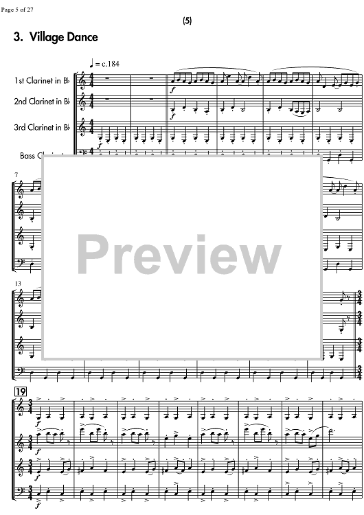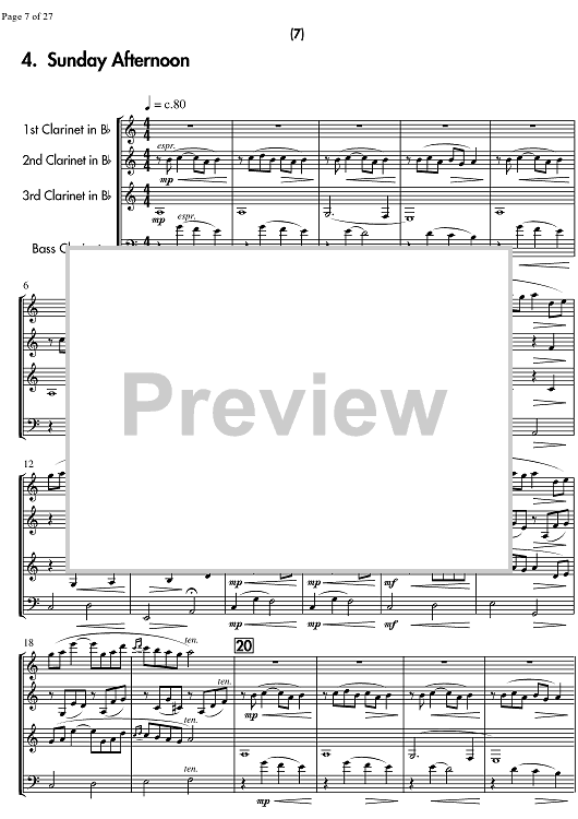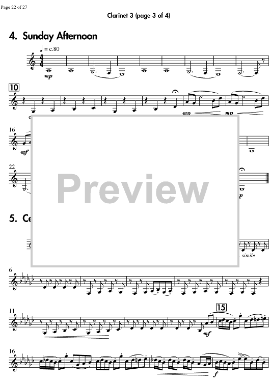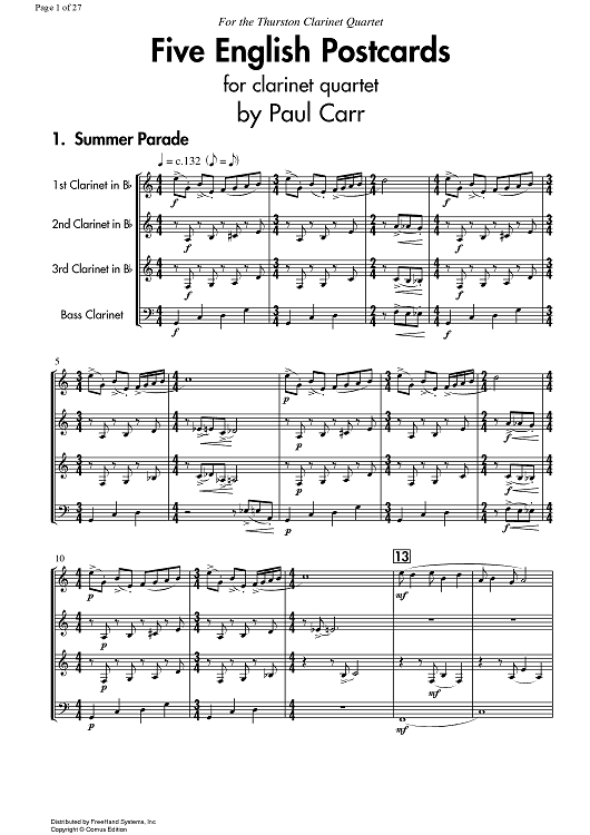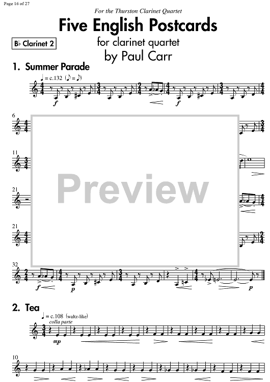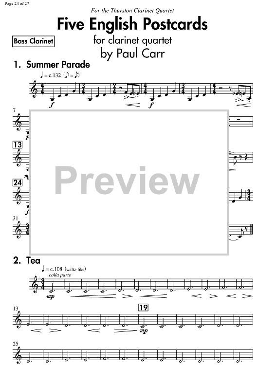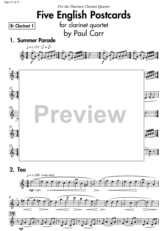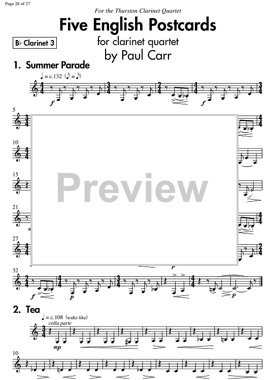 Digital Sheet Music for 5 English Postcards by , Paul Carr scored for 4 Clarinets; id:321913