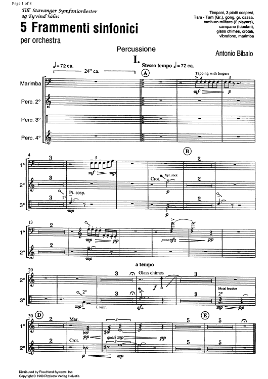 "5 Frammenti sinfonici" Sheet Music by Antonio Bibalo
