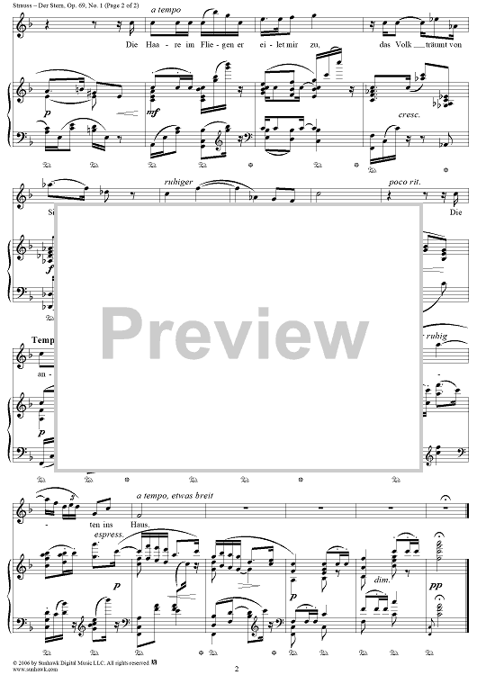 Digital Sheet Music for 5 kleine Lieder, Op. 69: No. 1, Der Stern by Richard Strauss scored for Voice/Piano; id:318065