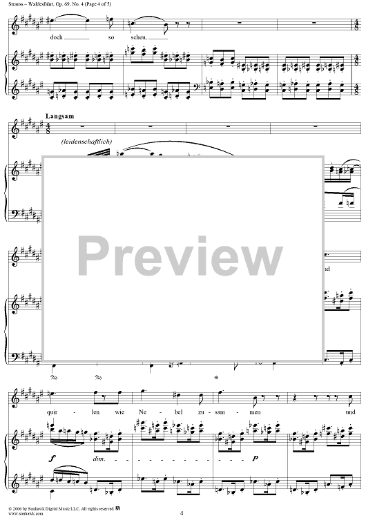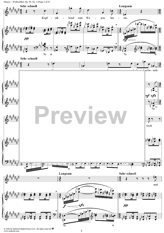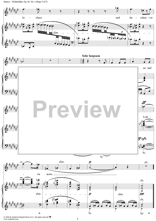 Digital Sheet Music for 5 kleine Lieder, Op. 69: No. 4, Waldesfahrt by Richard Strauss scored for Voice/Piano; id:318068