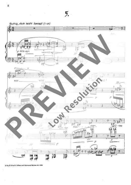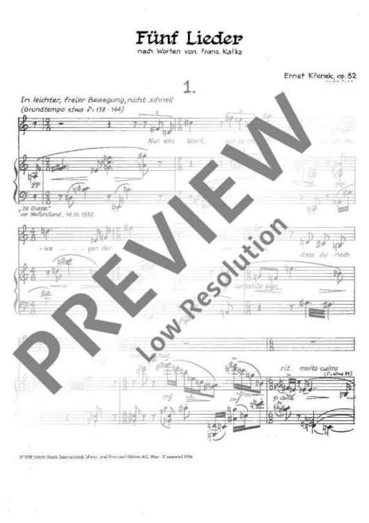 Digital Sheet Music for 5 Lieder nach Kafka by Ernst Krenek scored for Voice And Piano; id:473270