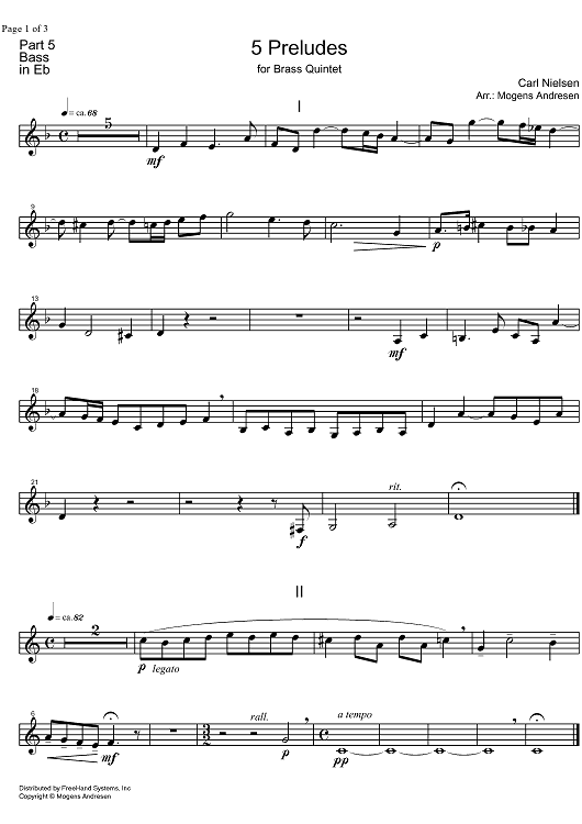 Digital Sheet Music for 5 Preludes by Mogens Andresen, Carl Nielsen scored for Brass Quintet; id:331560