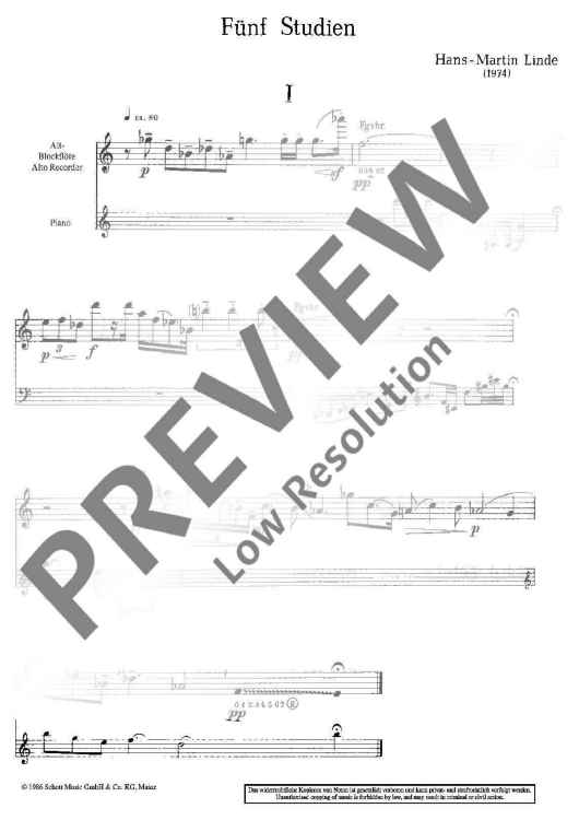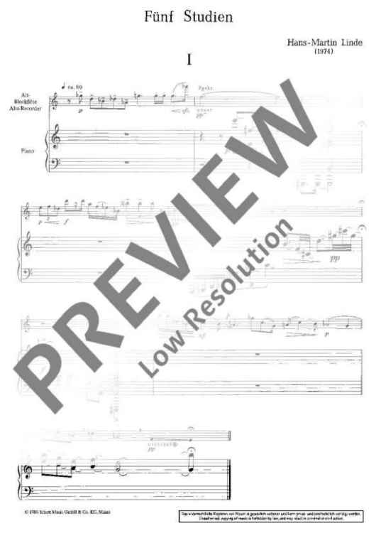 Digital Sheet Music for 5 Studies by Hans-Martin Linde scored for Treble Recorder And Piano; id:482808