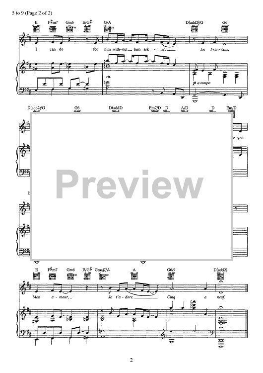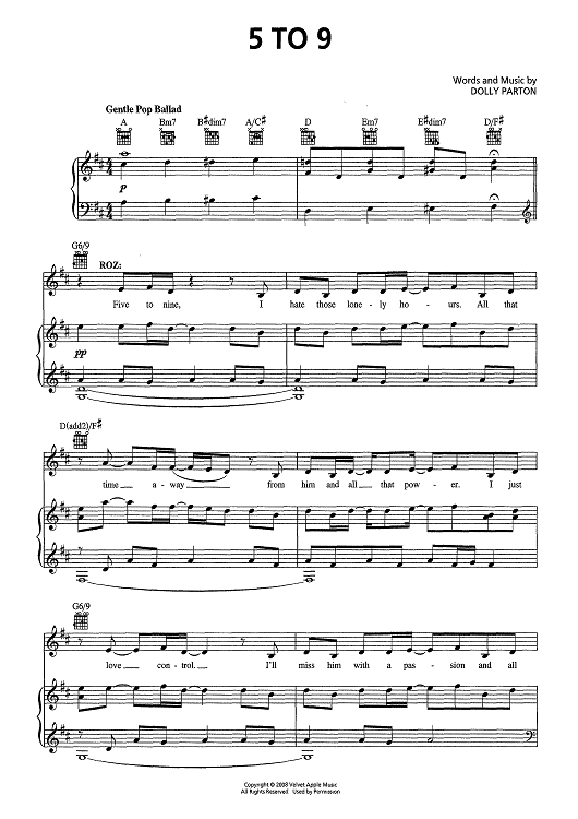 Digital Sheet Music for 5 To 9 - from 9 To 5 The Musical by Dolly Parton scored for Piano/Vocal/Chords; id:467536