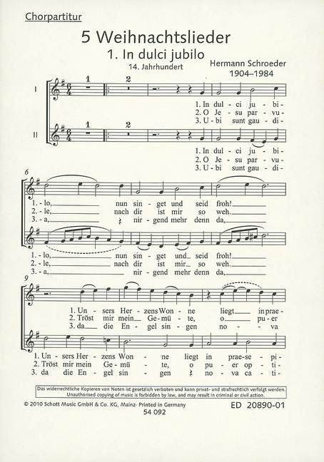 "5 Weihnachtslieder - Choral Score" Sheet Music by Hermann Schroeder