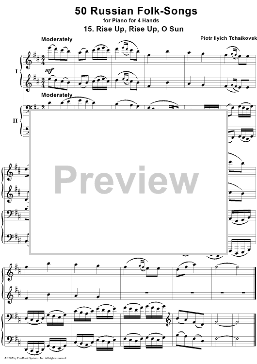 Digital Sheet Music for 50 Russian Folk-Songs. No. 15. Rise Up, Rise Up, O Sun by Traditional, Peter Ilyich Tchaikovsky scored for 1 Piano, 4 Hands; id:364451