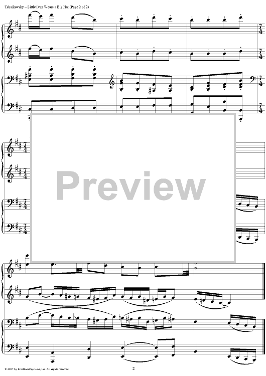 Digital Sheet Music for 50 Russian Folk-Songs. No. 32. Little Ivan Wears a Big Hat by Traditional, Peter Ilyich Tchaikovsky scored for 1 Piano, 4 Hands; id:364476