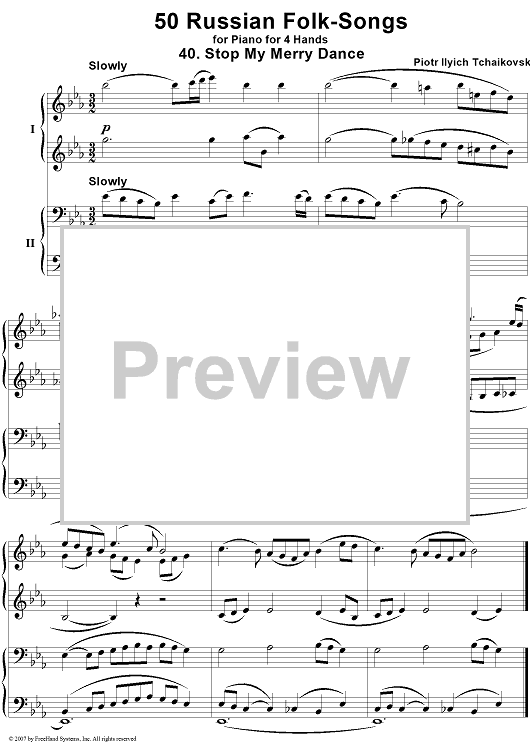 Digital Sheet Music for 50 Russian Folk-Songs. No. 40. Stop My Merry Dance by Traditional, Peter Ilyich Tchaikovsky scored for 1 Piano, 4 Hands; id:364488