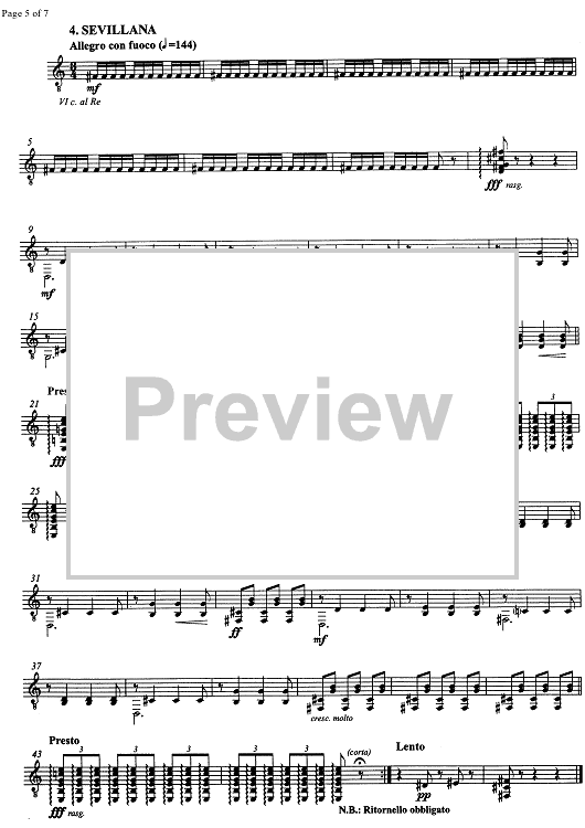 Digital Sheet Music for 6 canzoni andaluse (6 andalusian songs) - Guitar 2 by Daniele Zanettovich scored for 3 Guitars; id:351611