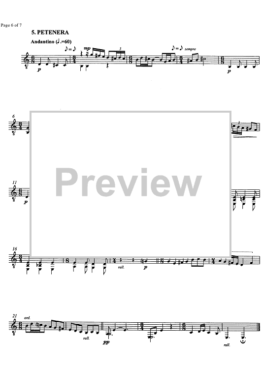 "6 canzoni andaluse (6 andalusian songs) - Guitar 3" Sheet Music by Daniele Zanettovich