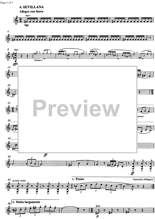 "6 canzoni andaluse (6 andalusian songs) - Violin 2" Sheet Music by Daniele Zanettovich