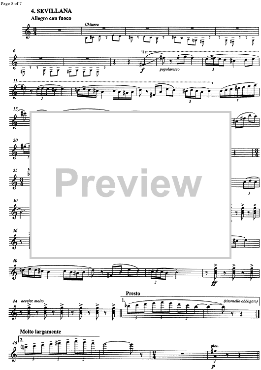 Digital Sheet Music for 6 canzoni andaluse (6 andalusian songs) - Violin by Daniele Zanettovich scored for Violin/Viola or Violin/Guitar; id:351598