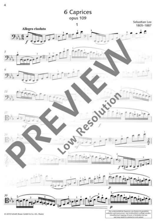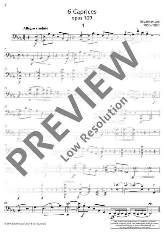 The 6 Caprices by the famous 19th-century teacher and virtuoso are aimed at advanced pupils and students. They are intended to focus on improving technique and virtuosity. The accompaniment of a second violoncello is optional.