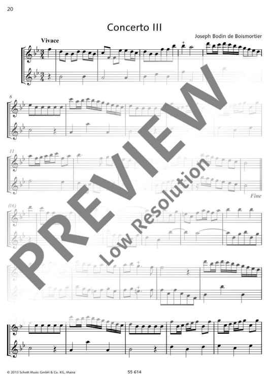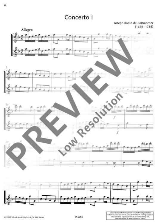 Digital Sheet Music for 6 Concerti - Score (also Performing Score) by Joseph Bodin de Boismortier scored for 2 Treble Recorders (flutes, Violins); id:483811