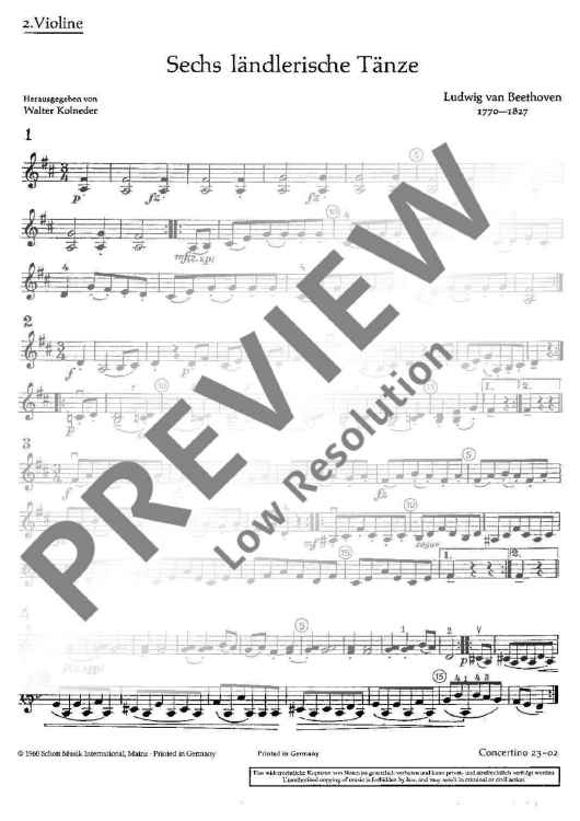 "6 ländlerische Tänze D Major - Violin II" Sheet Music by Ludwig van Beethoven
