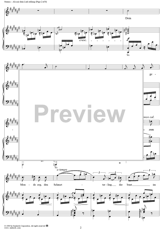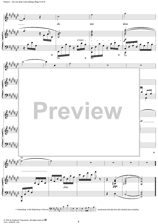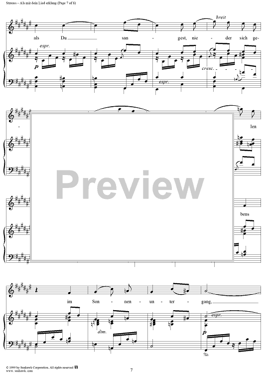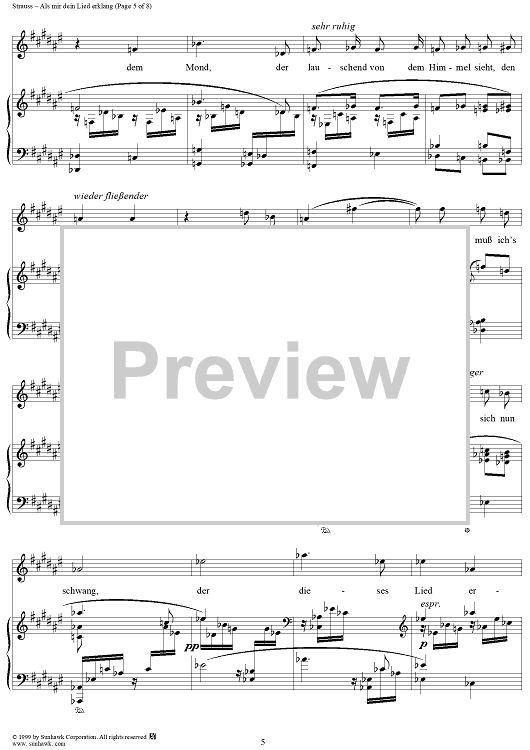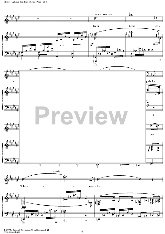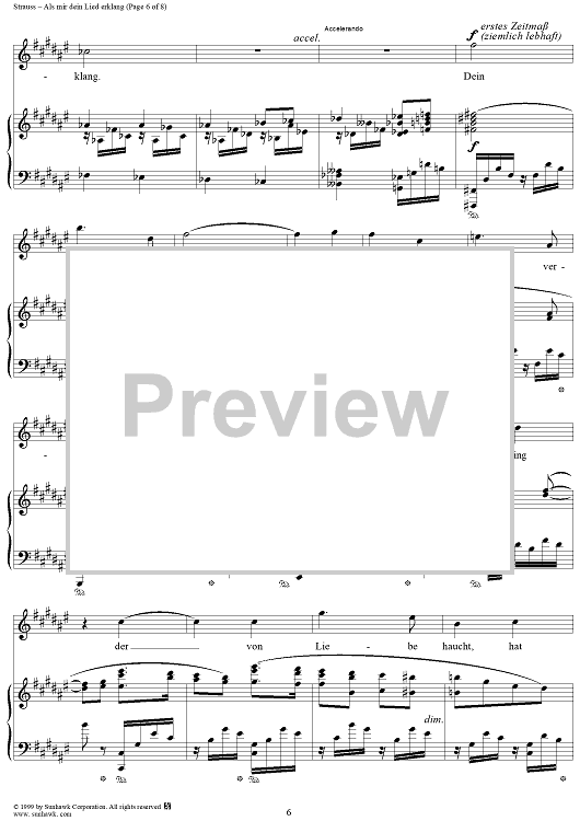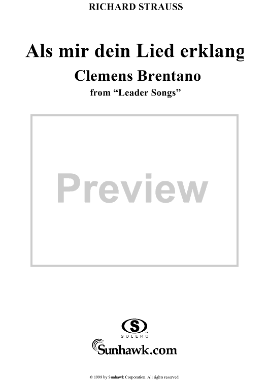 Digital Sheet Music for 6 Lieder, Opus 68, No. 4, Als mir dein Lied erklang (Clemens Brentano). by Richard Strauss scored for Voice/Piano; id:259239
