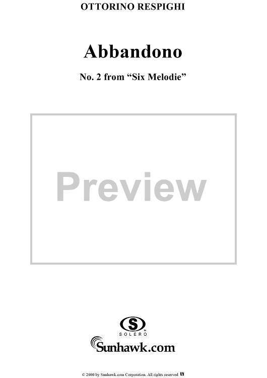 "6 Melodie, No. 2: Abbandono, P089" Sheet Music by Ottorino Respighi