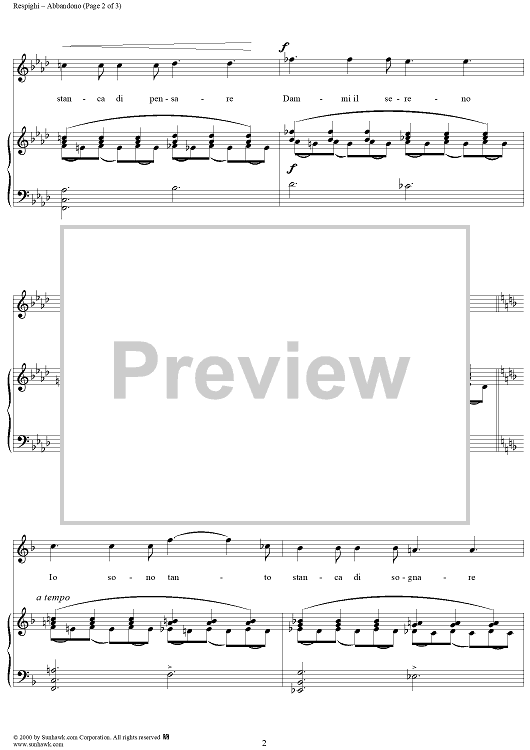 Digital Sheet Music for 6 Melodie, No. 2: Abbandono, P089 by Ottorino Respighi, Annie Vivanti scored for Voice/Piano; id:255477