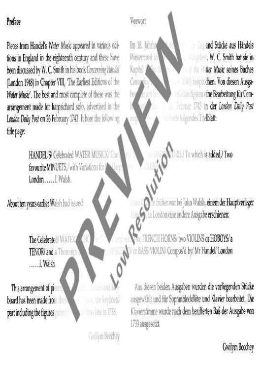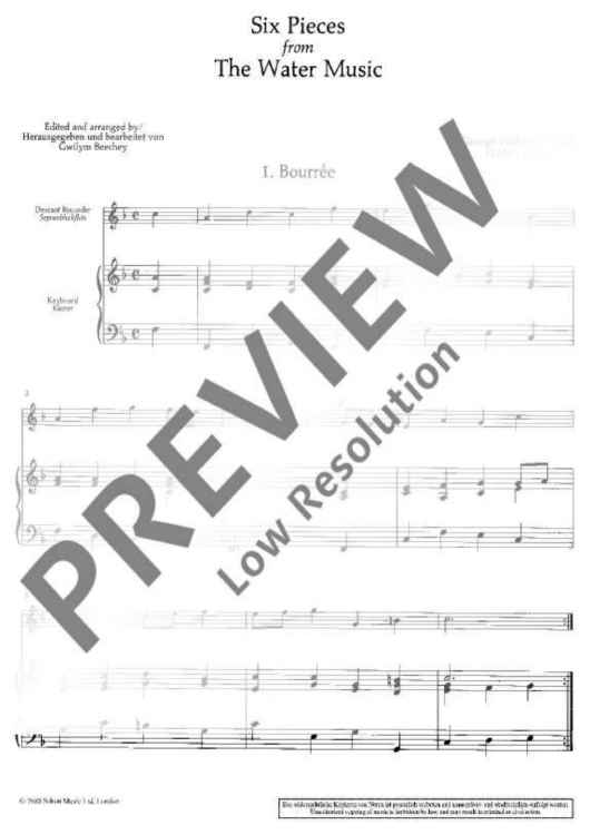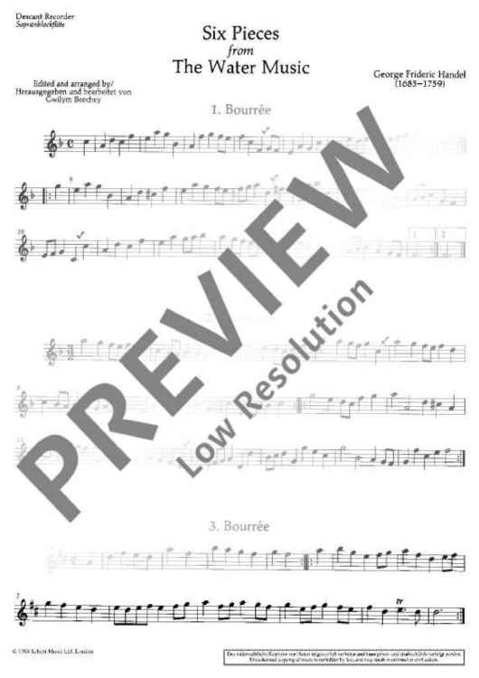 Digital Sheet Music for 6 Pieces by George Frideric Handel, Gwilym Beechey scored for Soprano Recorder And Piano; id:474536