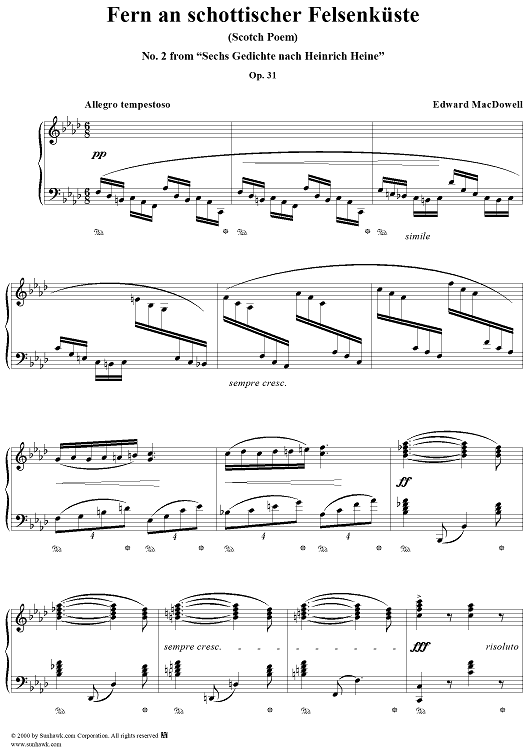 Digital Sheet Music for 6 Poems after Heine, Op. 31 No. 2: Scotch Poem by Edward MacDowell scored for Piano Solo; id:255256