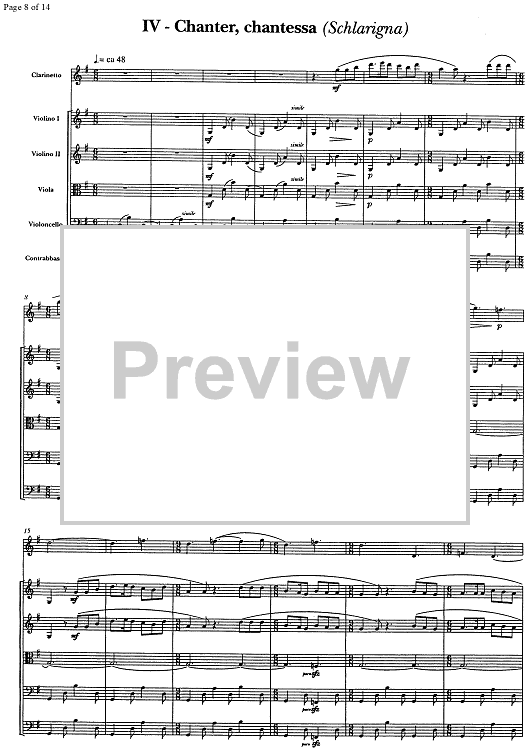 Digital Sheet Music for 6 rätoromancische Volkslieder Op.76a - Score by , Gion Derungs scored for Clarinet/Strings; id:336213