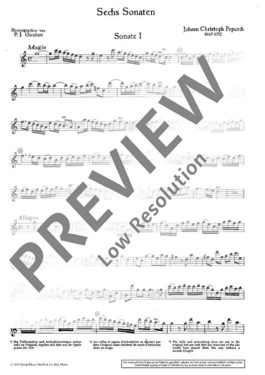 "6 Sonatas" Sheet Music by John Christopher Pepusch