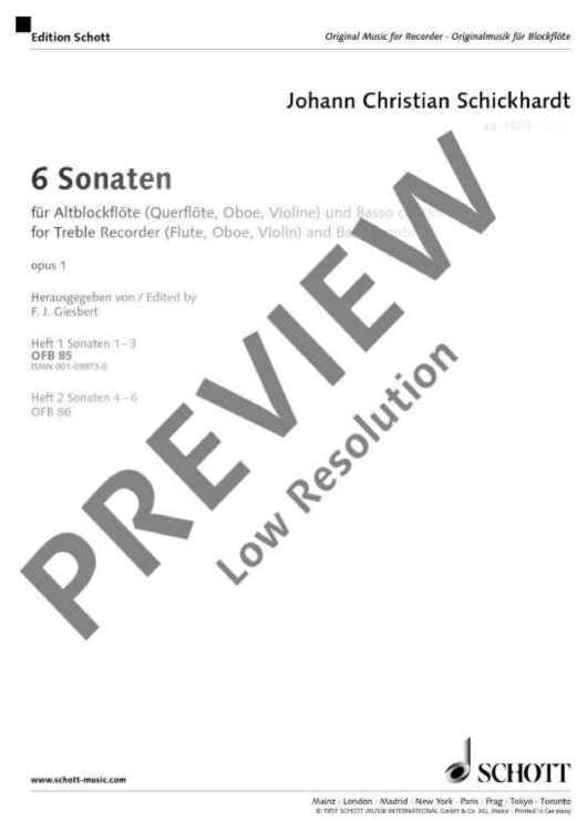 "6 Sonatas" Sheet Music by Johann Christian Schickhardt