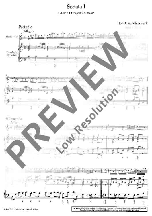 Digital Sheet Music for 6 Sonatas by Johann Christian Schickhardt scored for Treble Recorder And Basso Continuo; Cello (viola Da Gamba) Ad Libitum; id:476137