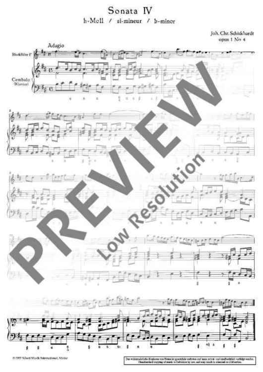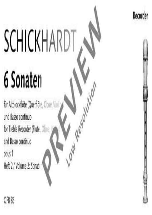 Digital Sheet Music for 6 Sonatas by Johann Christian Schickhardt scored for Treble Recorder And Basso Continuo; Cello (viola Da Gamba) Ad Libitum; id:483081