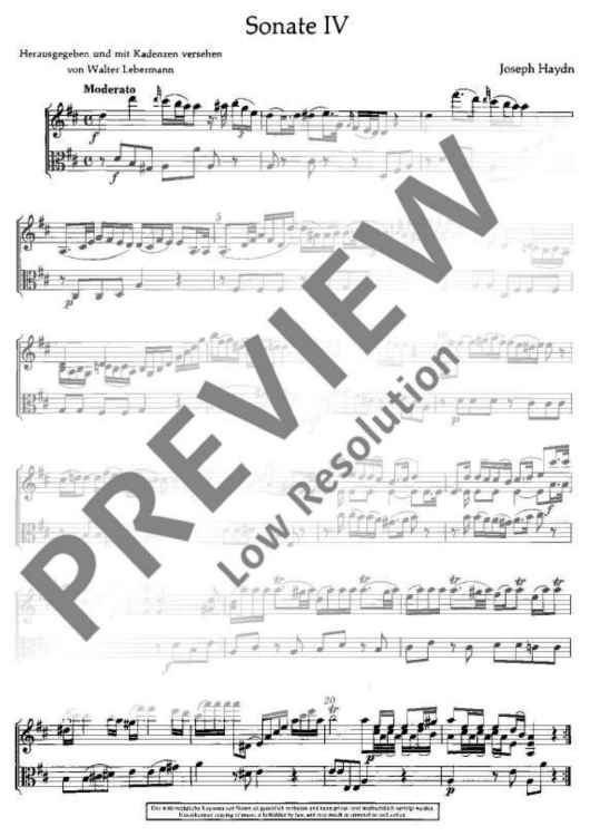 Joseph Haydn composed the six sonatas for violin and viola in 1769 and 1773. He himself entered them in the catalog of works under the name Solo per il Violino mit Begleitung einer Viola. The violin is treated as a soloist here, with the viola taking on the accompanying function. The occasion for these compositions is not yet known. Haydn may have composed the sonatas for his own use or for the first violinist of the court orchestra, Luigi Tomasini. This is the second volume, which comprises sonatas 4-6 . This edition was provided with cadenzas