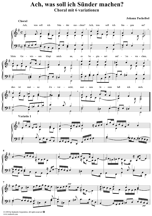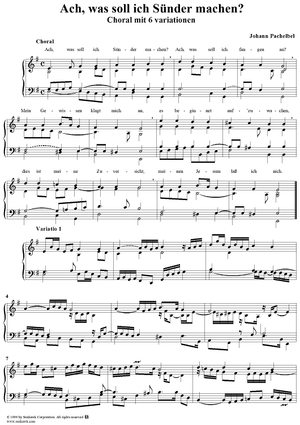 "6 Variations on the Chorale "Ach, was soll ich Sünder machen?"" Sheet Music by Johann Pachelbel