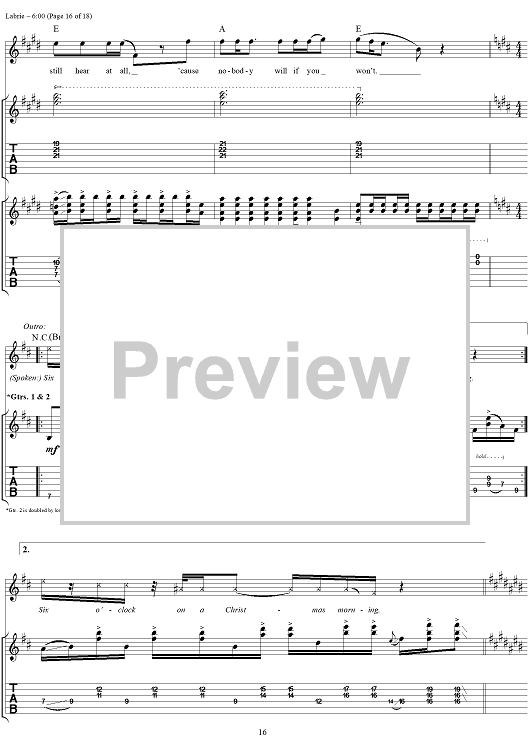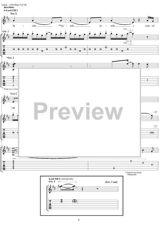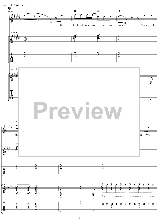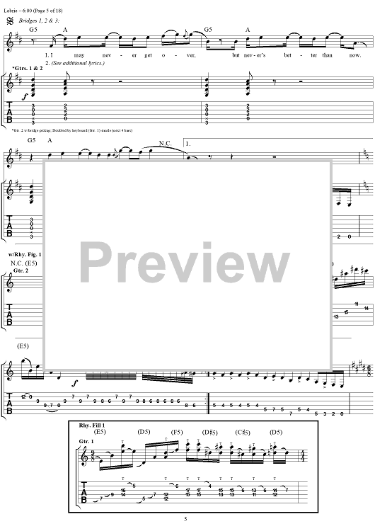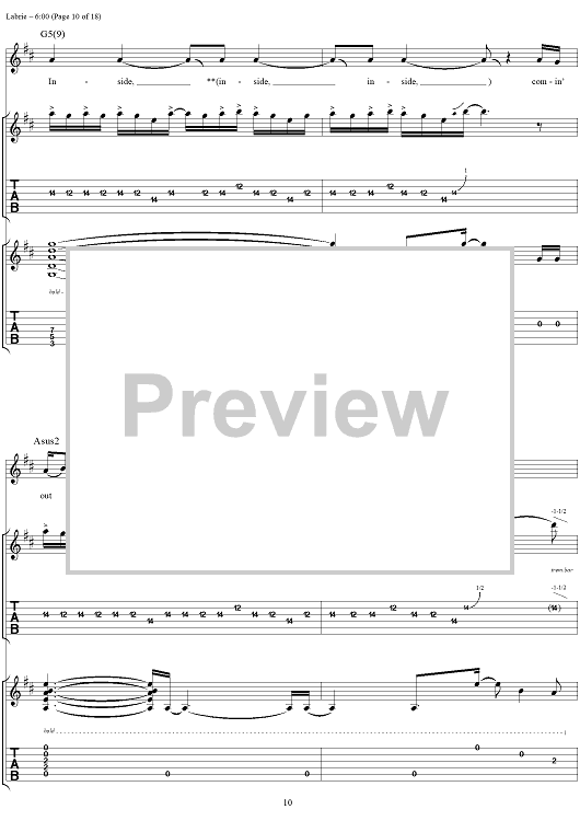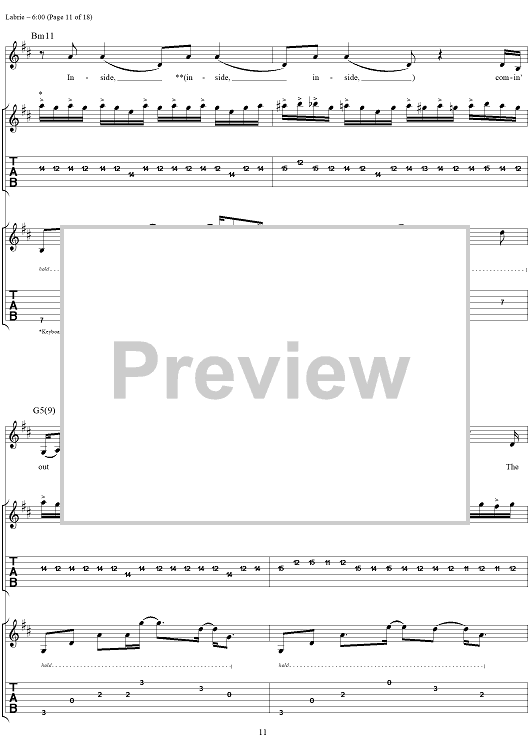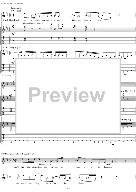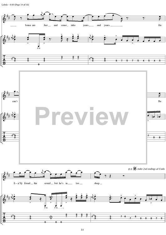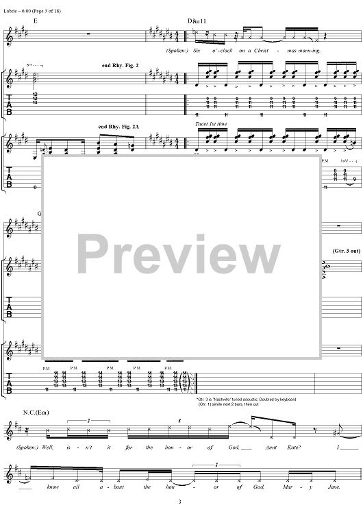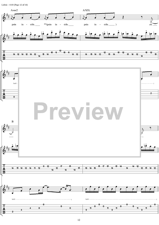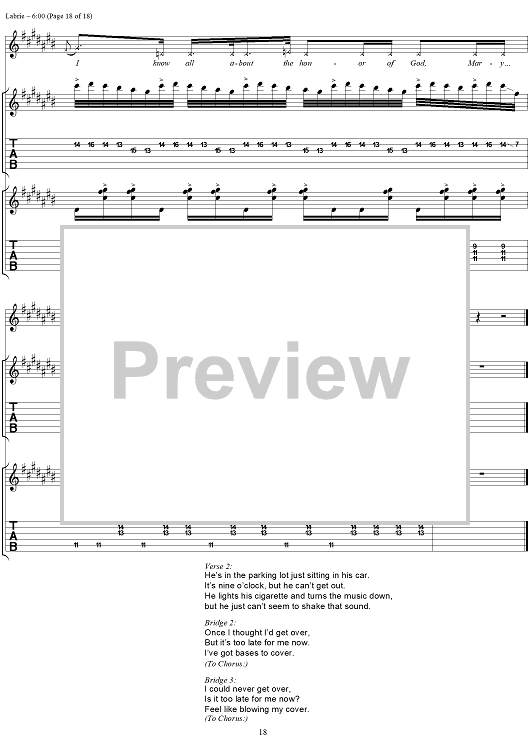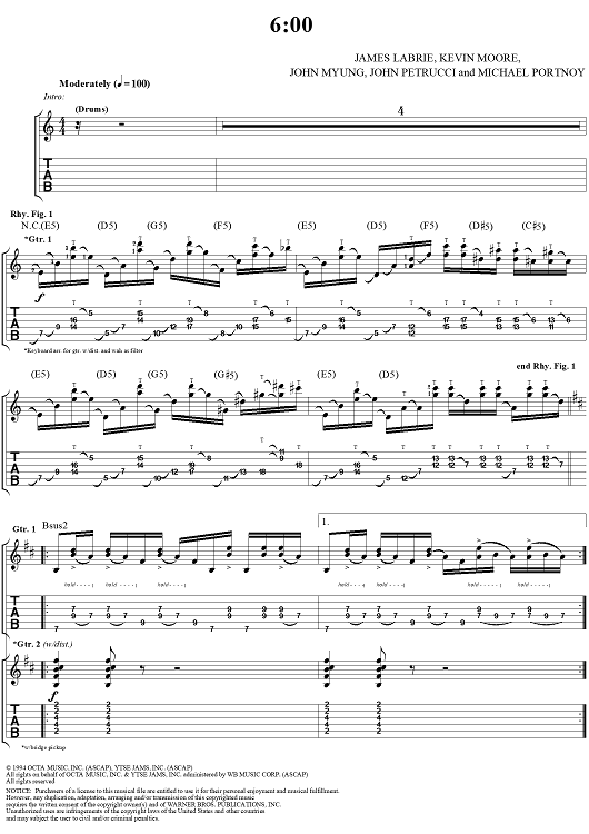 Digital Sheet Music for 6:00 (Six o'clock) by John Myung, Michael Portnoy, Dream Theater, John Petrucci, Kevin Moore, James LaBrie scored for Guitar Tab/Vocal; id:250215