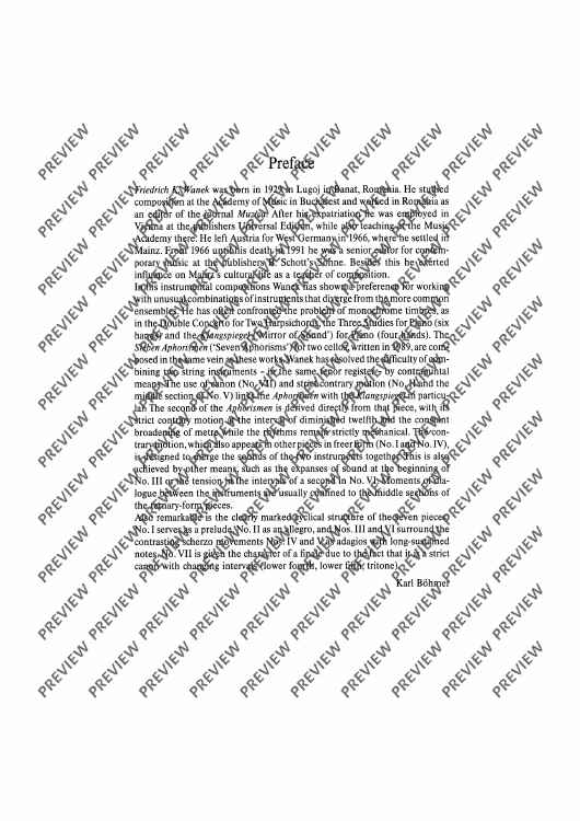 Digital Sheet Music for 7 Aphorismen - Performing Score by Friedrich K. Wanek scored for 2 Cellos; id:482967