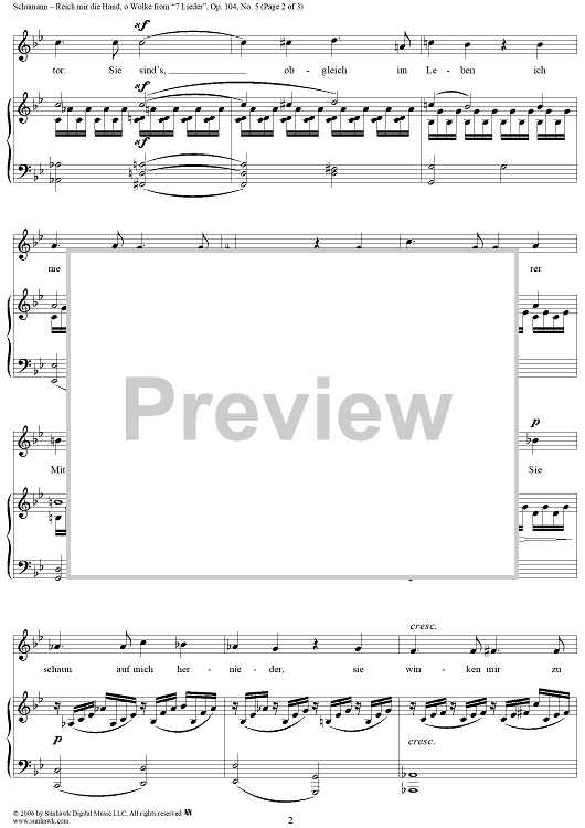 Digital Sheet Music for 7 Lieder, Op. 104, No. 5: Reich mir die Hand, o Wolke by Robert Schumann, Elisabeth Kulmann scored for Voice/Piano; id:318110