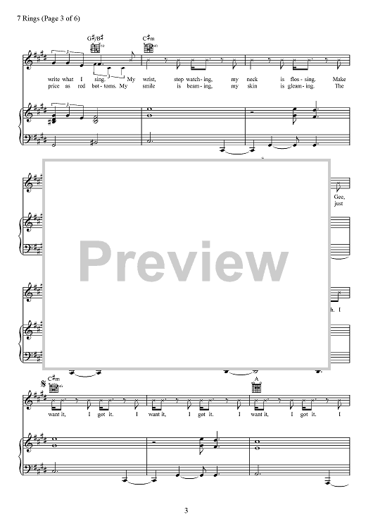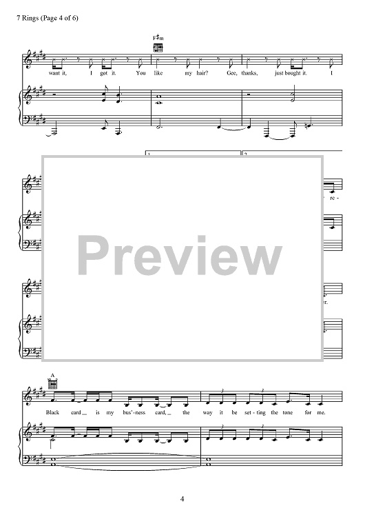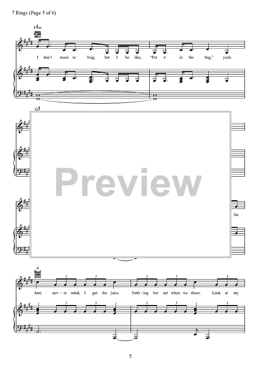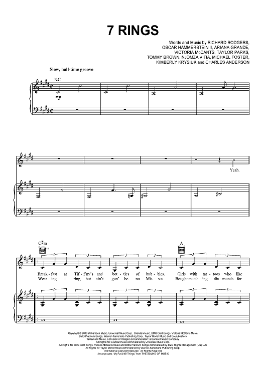 Digital Sheet Music for 7 Rings by Richard Rodgers, Oscar Hammerstein II, Michael Foster, Ariana Grande, Victoria McCants, Taylor Parks, Tommy Brown, Charles Anderson, Njomza Vitia, Kimberly Krysiuk scored for Piano/Vocal/Chords; id:467280