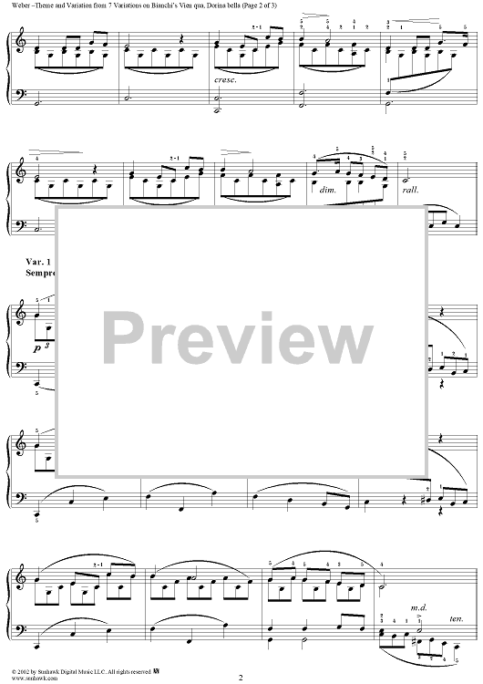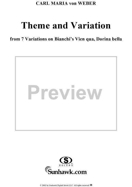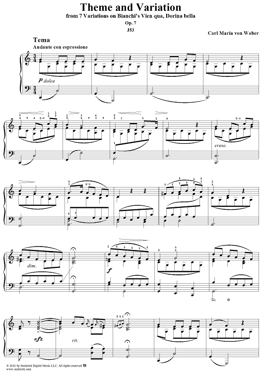 "7 Variations on Bianchi's Vien quà, Op. 7, J53: Theme" Sheet Music by Carl Maria Von Weber