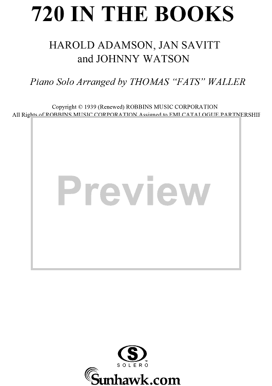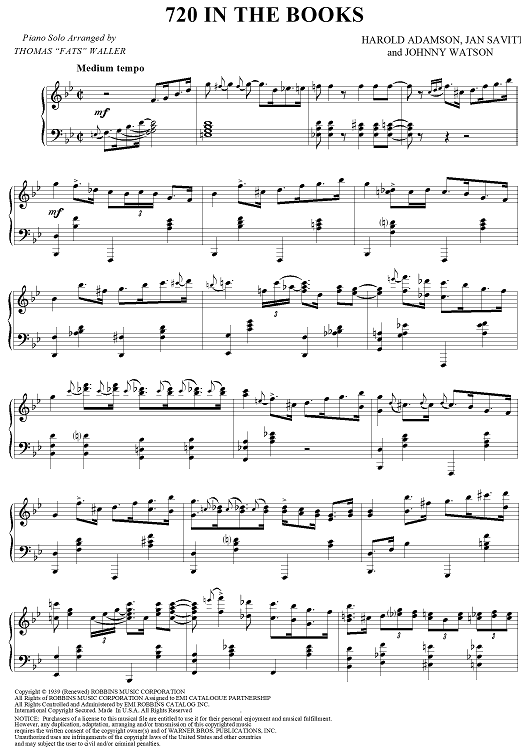Digital Sheet Music for 720 in the Books by Fats Waller, Harold Adamson, Jan Savitt, Johnny Watson scored for Piano Solo; id:116370