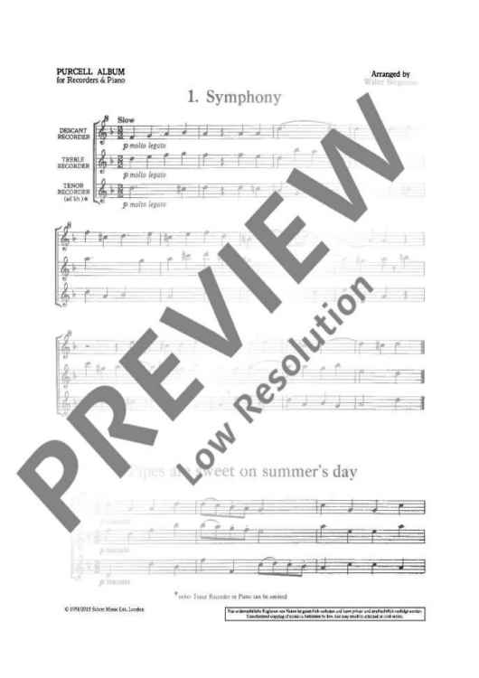 Digital Sheet Music for 8 Famous Pieces - Score and Parts by Henry Purcell scored for Soprano- And Treble Recorder And Piano Or 3 Recorders (sat) And Piano Ad Libitum; id:486437