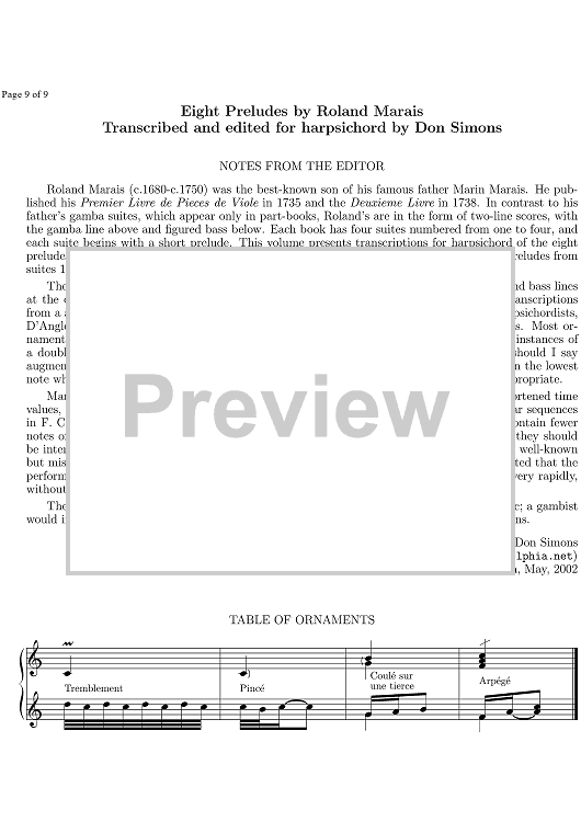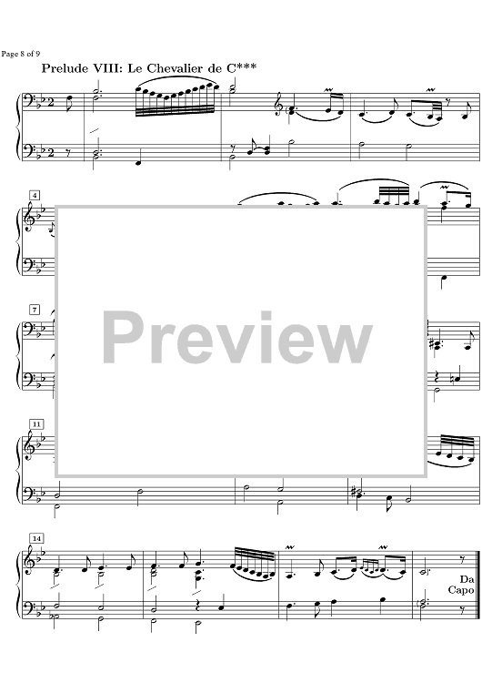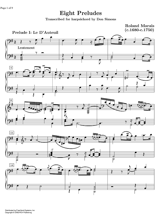 Digital Sheet Music for 8 Preludes by Roland Marais scored for Harpsichord; id:337004