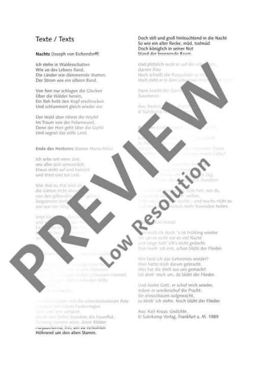 The form of this work is not so much based on the classical symphony, but is closer to a song cycle structure which has now grown to include 13 movements for choir and orchestra. The Romantic characteristics and form of the 8th Symphony are both reminiscent of Gustav Mahler’s choral symphonic works and his Lied von der Erde. Krzysztof Penderecki here extends and augments his expressive musical material, for example through cluster techniques and glissandi, possibilities which he has been systematically exploring since the 1950s. He has compiled the texts from poetry by Eichendorff, Rilke, Brecht, Kraus, Hesse, Goethe, Bethge and von Arnim on the theme of ’forests and trees’, which has long been close to his heart as demonstrated by his private arboretum near Luslavice (’my personal Ithaca’) containing over 1500 species of trees.