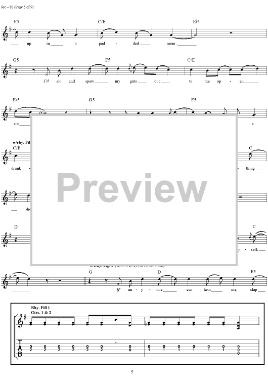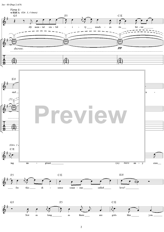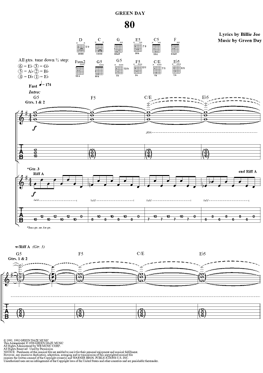 Digital Sheet Music for 80 by Billie Joe Armstrong, Green Day scored for Guitar Tab/Vocal; id:109987