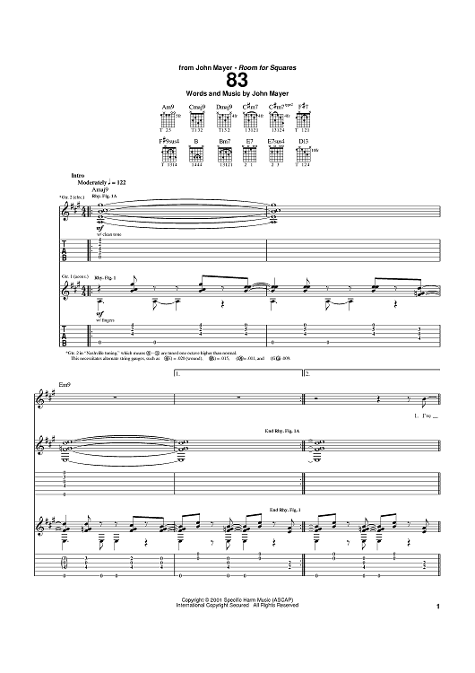Digital Sheet Music for 83 by John Mayer scored for Guitar Tab; id:371483