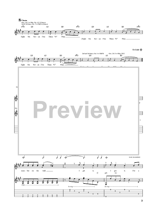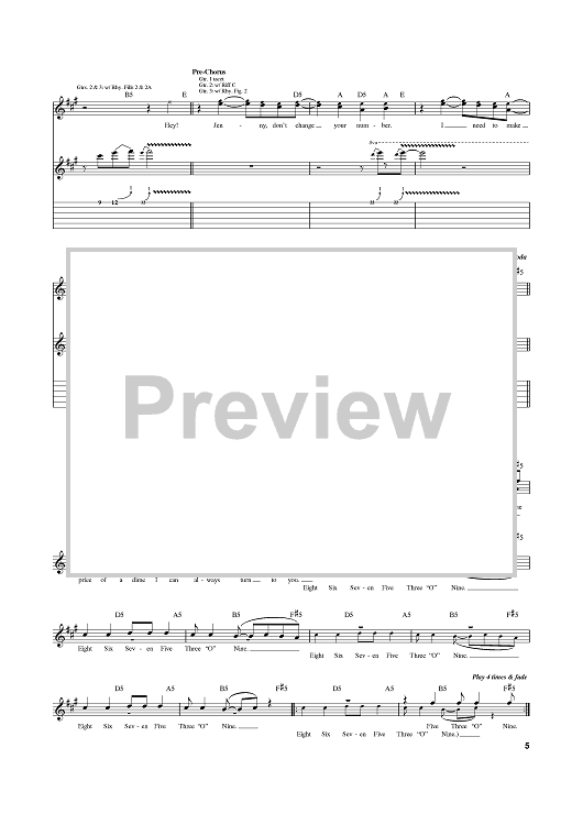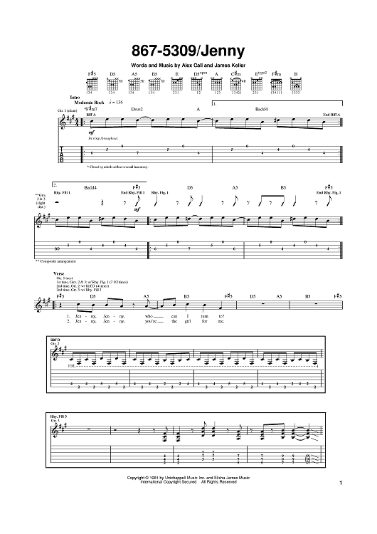 Digital Sheet Music for 867-5309/Jenny by Alex Call, James Keller, Tommy Tutone scored for Guitar Tab/Vocal/Chords; id:367887