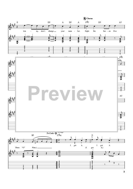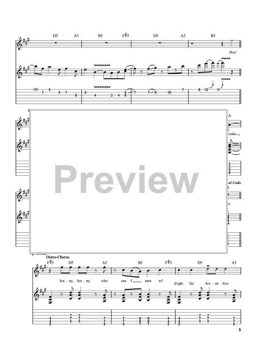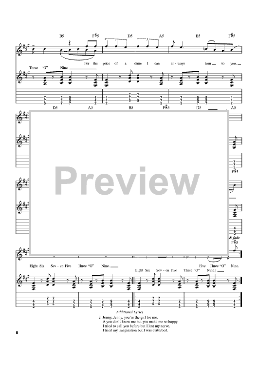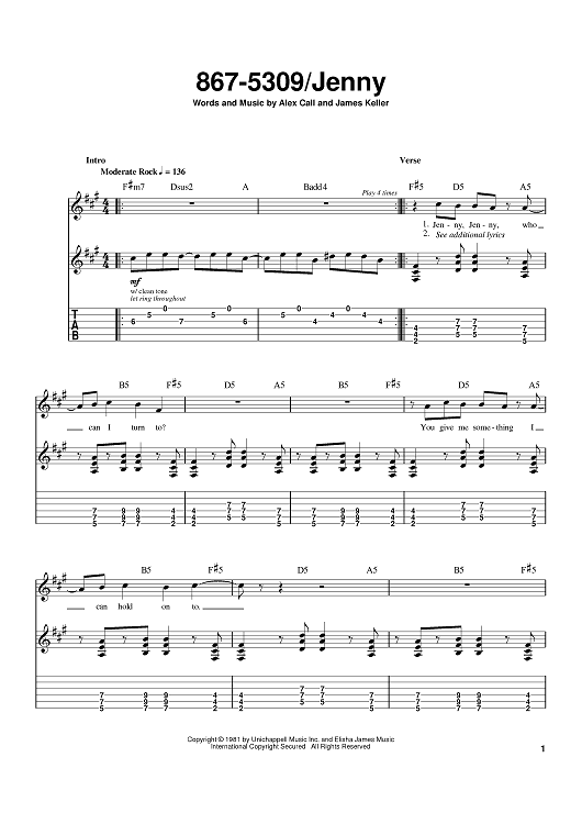 Digital Sheet Music for 867-5309/Jenny by Alex Call, James Keller, Tommy Tutone scored for Guitar Tab; id:374221
