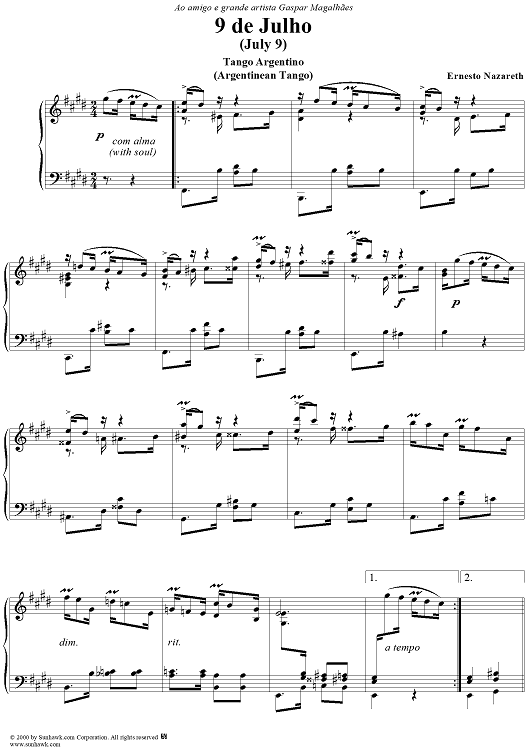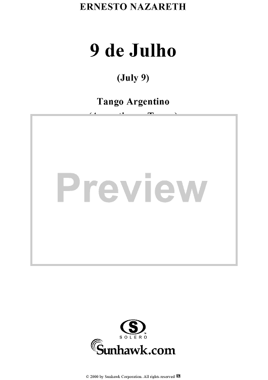 Digital Sheet Music for 9 de Julho by Ernesto Nazareth scored for Piano Solo; id:240852
