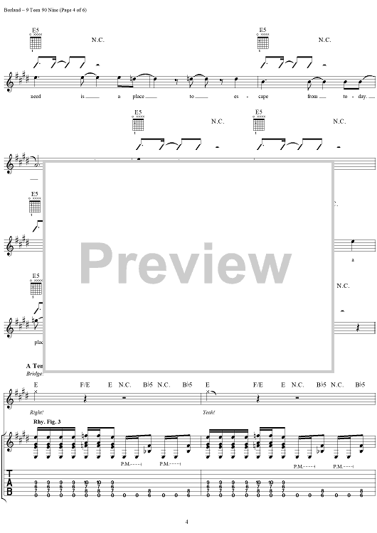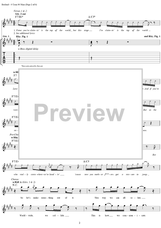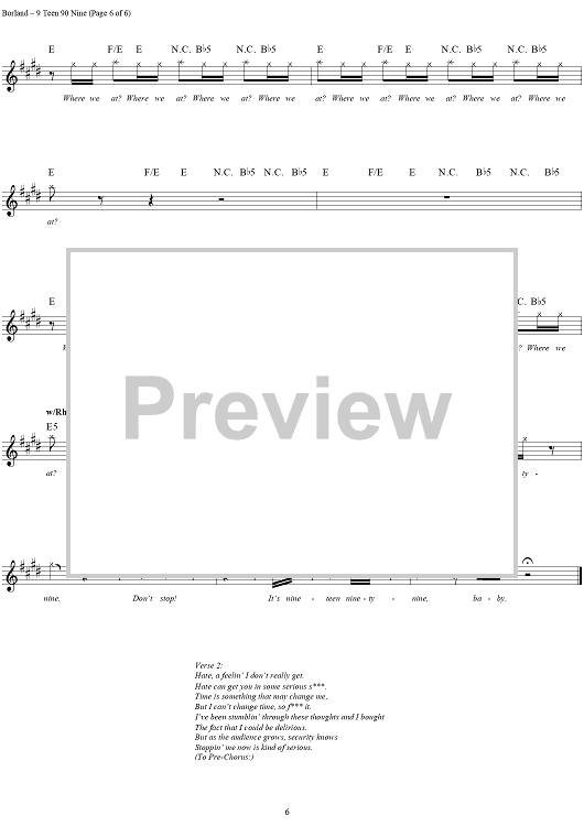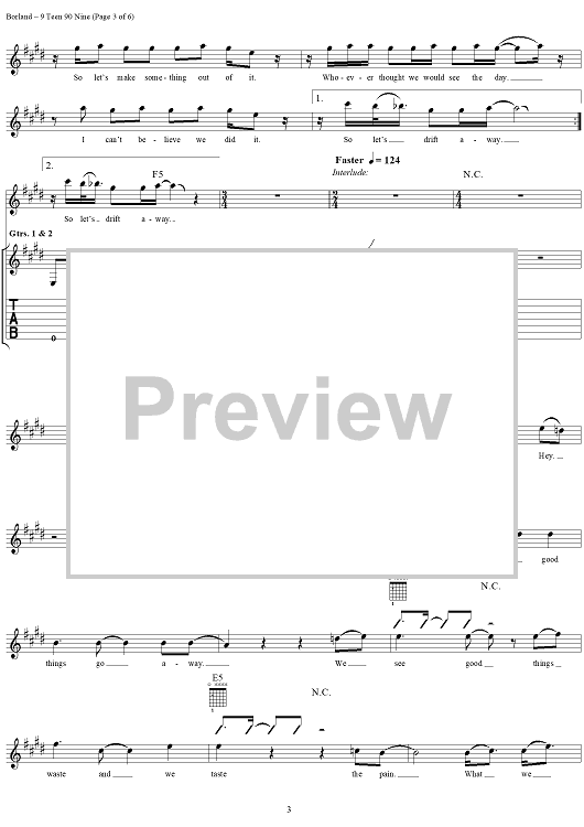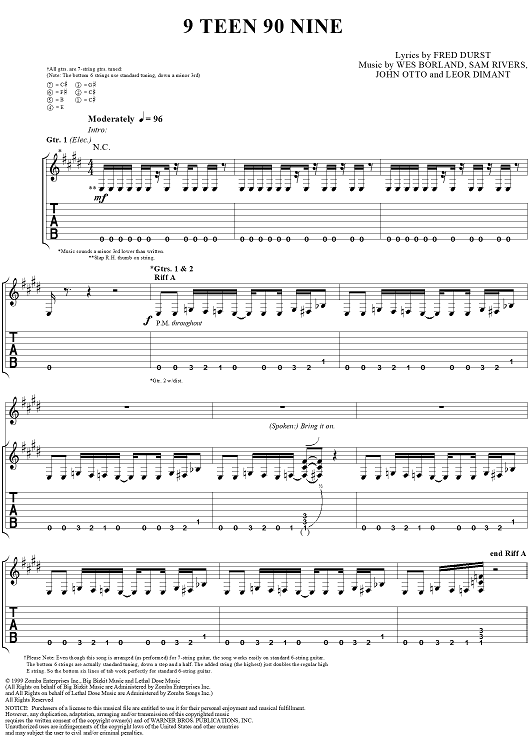 Digital Sheet Music for 9 Teen 90 Nine by Wes Borland, Sam Rivers, John Otto, Leor Dimant, Fred Durst, Limp Bizkit scored for Guitar Tab/Vocal; id:236534