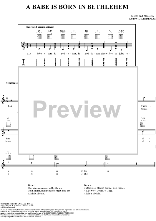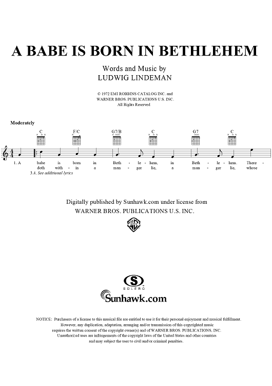 Digital Sheet Music for A Babe Is Born In Bethlehem by Ludwig Lindeman scored for Lead Sheet; id:250704